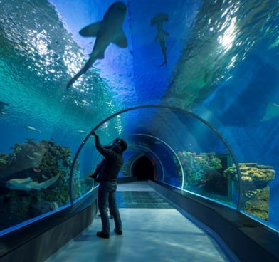 Centrinis akvariumas. Įspūdingai atrodantis, nors ir ne pats didžiausias Europoje, bet su skaidraus stiklo tuneliu, vedančiu skersai akvariumo, kuriame būnant žuvys plaukioja virš galvos, iš šonų ir po kojomis.